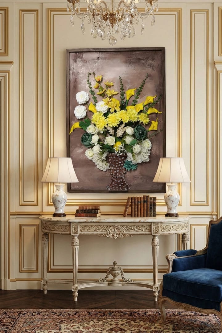 | Art Style | 3D Floral Relief / High-Relief Sculpture Art / Mixed Media |
